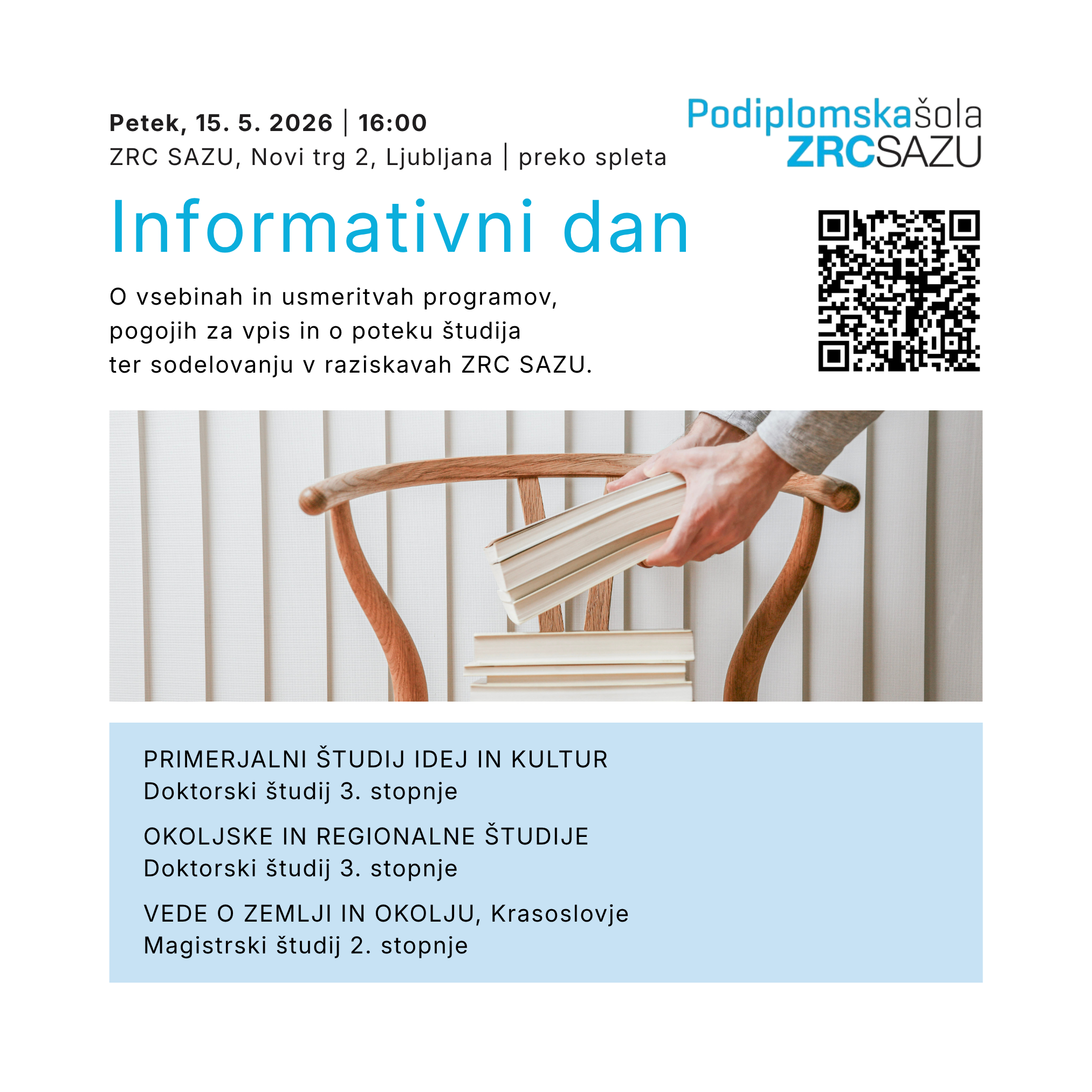 We invite you to the Open day of the Postgraduate School ZRC SAZU, which will take place on Friday, May 15, 2026, at 4:00 p.m. at ZRC SAZU, Novi trg 2, 1st floor, Ljubljana, and online!